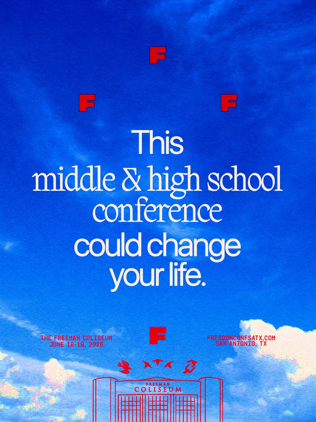 A CONFERENCE FOR MIDDLE AND HIGH SCHOOL STUDENTS TO GATHER IN SAN ANTONIO, TX TO ENCOUNTER THE HOLY SPIRIT, BREAK FREE FROM WHAT’S HOLDING THEM BACK, AND DISCOVER THE LIFE JESUS DESIGNED THEM TO LIVE.